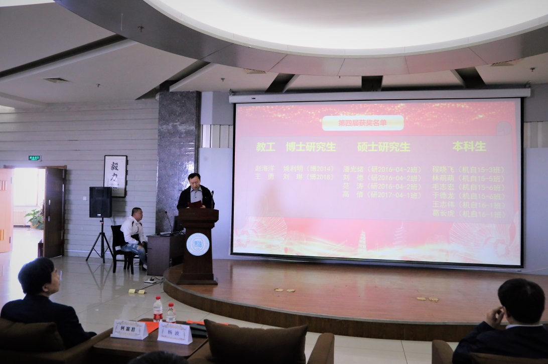 杨波宣读了包括青年教师赵海洋、王勇,博士研究生姚利明、刘琳,以及高倩等4名硕士研究生和程晓飞等6名本科生在内的本届“惠博普奖学金”获奖名单。在对获奖人员送上祝福的同时也表达了对机械学院青年教师和学子的殷切希望。他要求全院师生紧抓机遇,深化校企合作,不辜负社会和企业对我们的期望,同时为助力学校实施“强陆-拓海-壮新”发展战略做出更大的贡献。