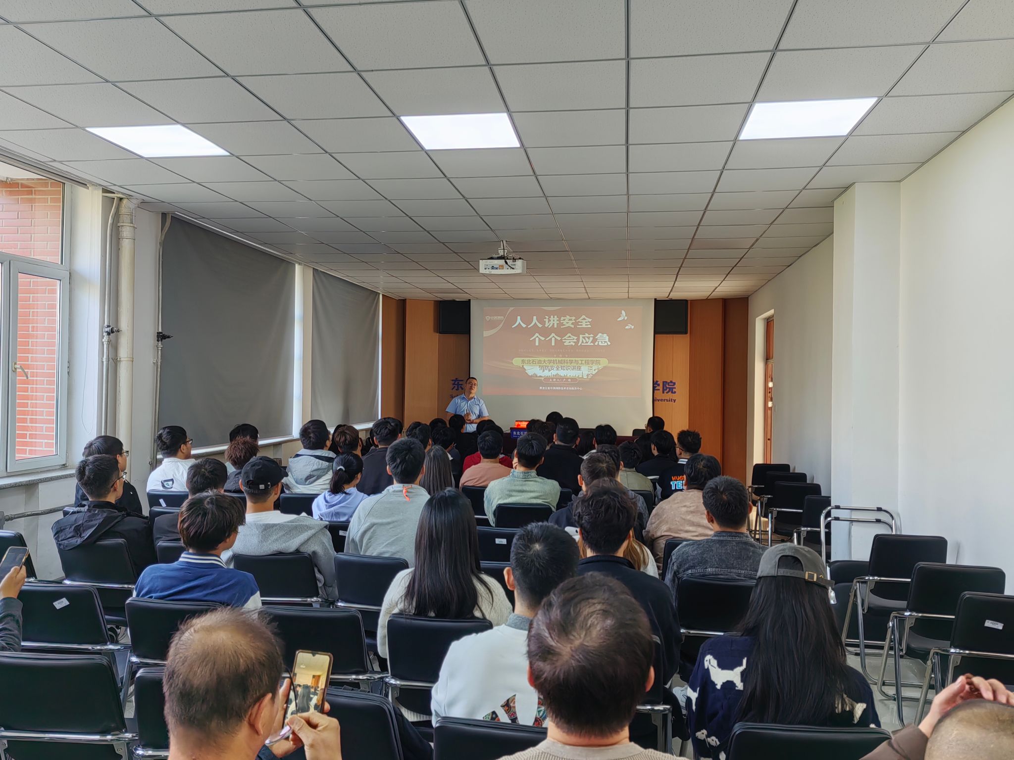 为切实提高学院师生安全意识和火灾自防自救能力,坚决防范和遏制火灾事故发生,9月27日,我院联合中消消防知识宣传中心开展安全知识培训及消防疏散灭火演练活动。活动由学院办公室主任石磊组织,学院领导班子、教职工和研究生参加了本次培训。