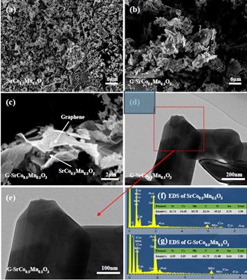论文以SrCoO3钙钛矿型金属氧化物为基础材料,通过掺杂Mn并与石墨烯纳米片材料相复合。采用材料分析手段、电化学研究方法和电池测试装置对制备催化剂进行表征和测试分析,得出当SrCoO3掺杂50% Mn时和负载20%的石墨烯纳米片时,可以更好地提高SrCoO3的ORR催化性能。石墨烯纳米片负载在颗粒相对大的SrCoO3钙钛矿材料上会影响氧的吸附能力,增大与氧的接触面积和材料松散度,提高了导电性和氧吸附位点数量,单位面积的放电容量达26.92 mWh/cm2,可以作为铝-空气电池理想的催化剂材料。