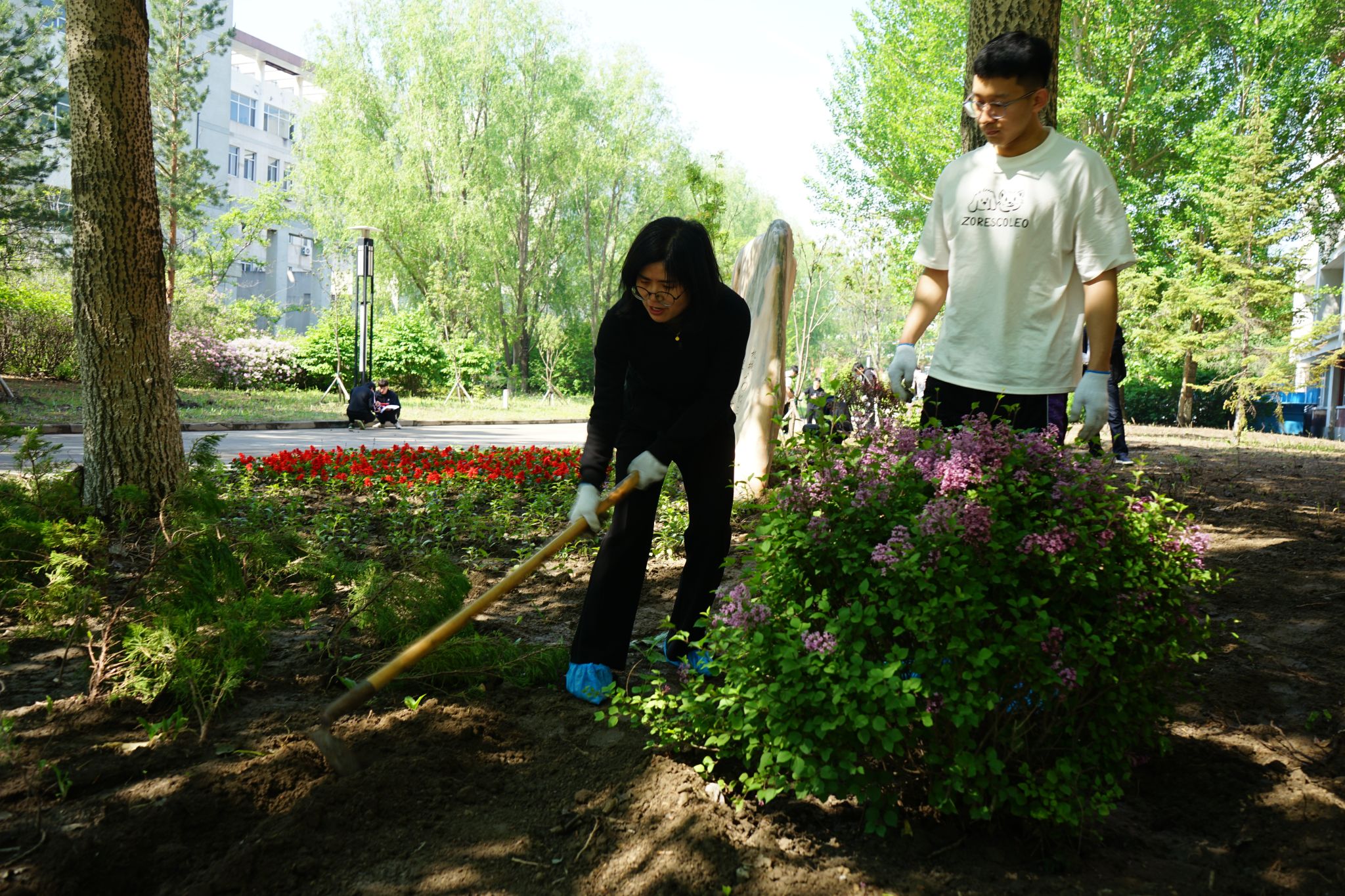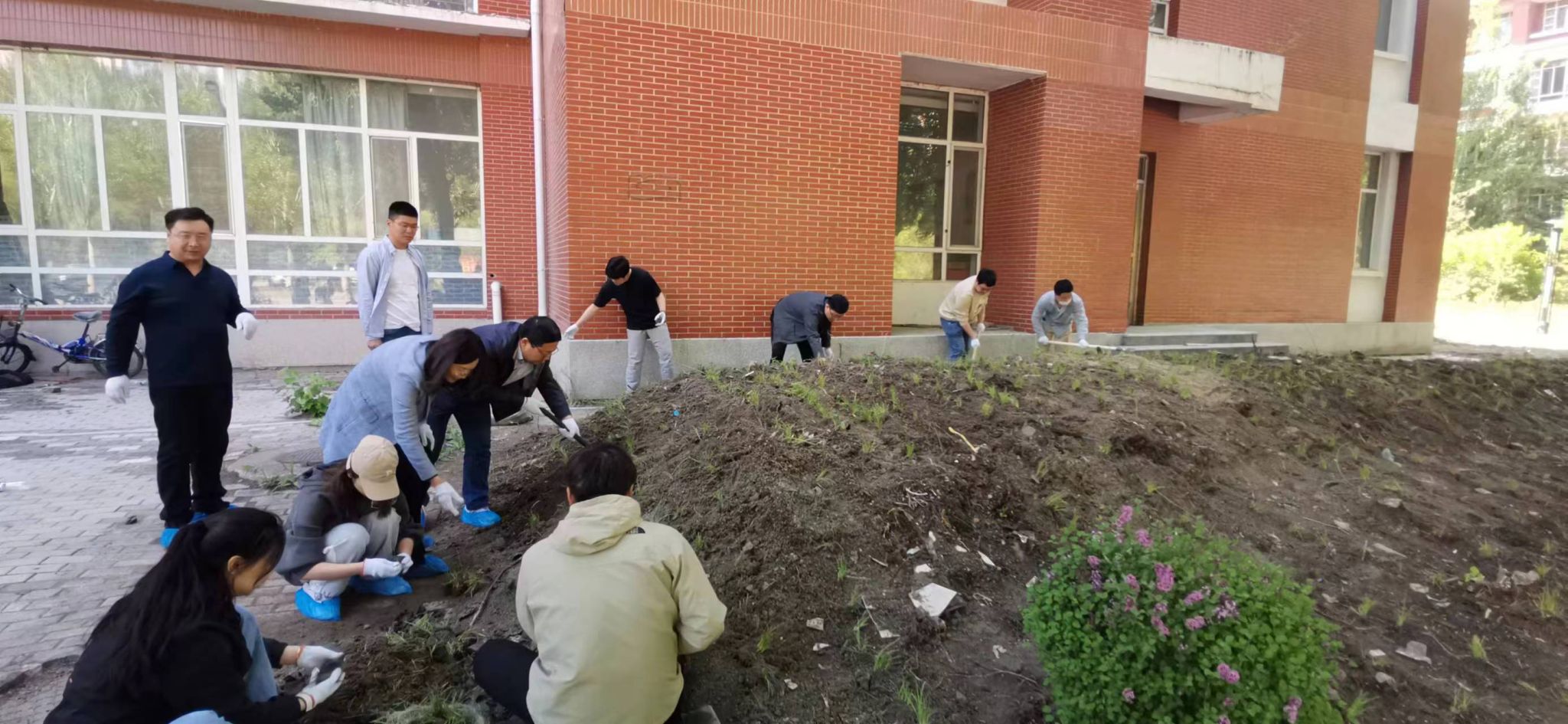 春风送爽气象新,百花争艳东油美。2024年5月28日,在2007so太阳集团党委组织下,学院领导班子成员、师生党员、入党积极分子、研究生志愿者等100多人,开展了一场别开生面的“种花种草种梦想,党员先锋示范强”主题党日活动:在机电馆楼前清洁环境、种植花草。学院党委书记王勇、院长王素玲出席活动,活动由党委副书记闫超主持。此次活动是深入贯彻习近平新时代中国特色社会主义思想,践行习近平生态文明思想的重要举措,以实际行动践行“绿水青山就是金山银山”的发展理念,打造绿色秀美校园。旨在通过实际行动,进一步提高机电馆楼宇环境的整洁度和美观度,同时提高师生的环保意识,增强党员服务意识、责任意识,为校园增色,为党旗添彩。