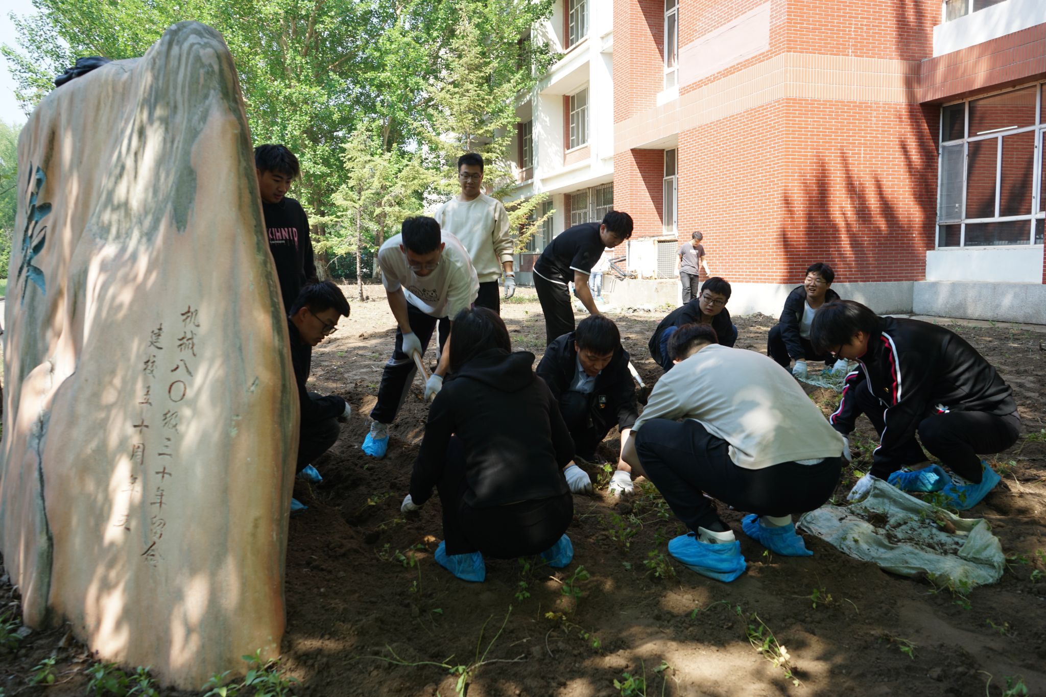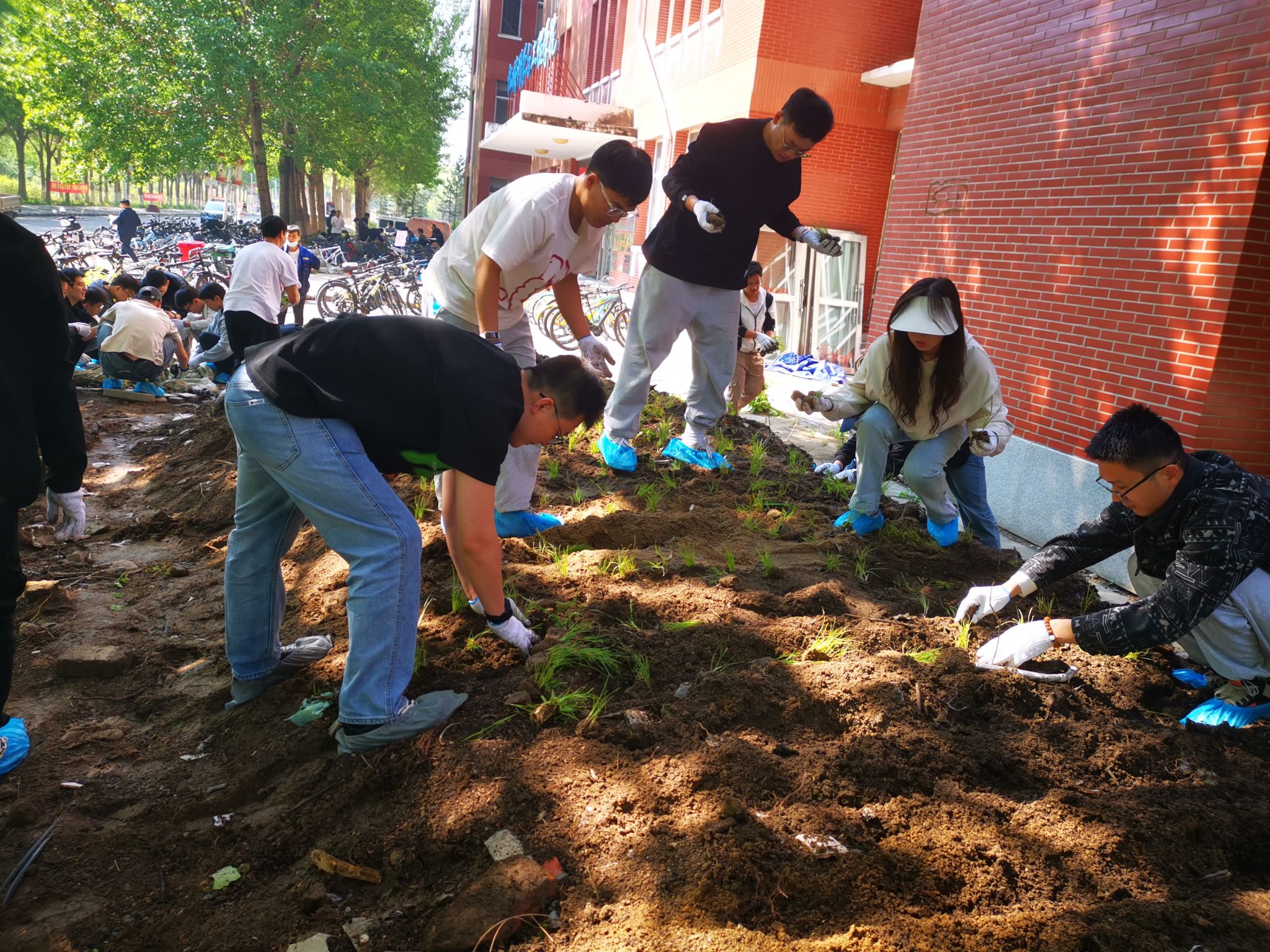 栽下一片新绿,播种一份希望。汗水书写历史,劳动铸就辉煌。劳动精神是一面旗帜,必将引领机械人向善向上。经过一整天的不懈努力,机电馆周围变得干净整洁,草皮环境焕然一新。这些新植不仅将成为校园的生态屏障,更寓意着学院对学子们的深切期望——如同幼苗成长为参天大树,愿每位学生都能在知识的土壤中茁壮成长。